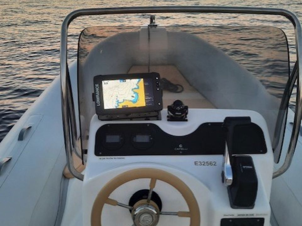 Semi rigide CAPELLI TEMPEST de 6,26 mètres, propulsé par un moteur de 115 CV YAMAHA, 4 temps injection à faible consommation.